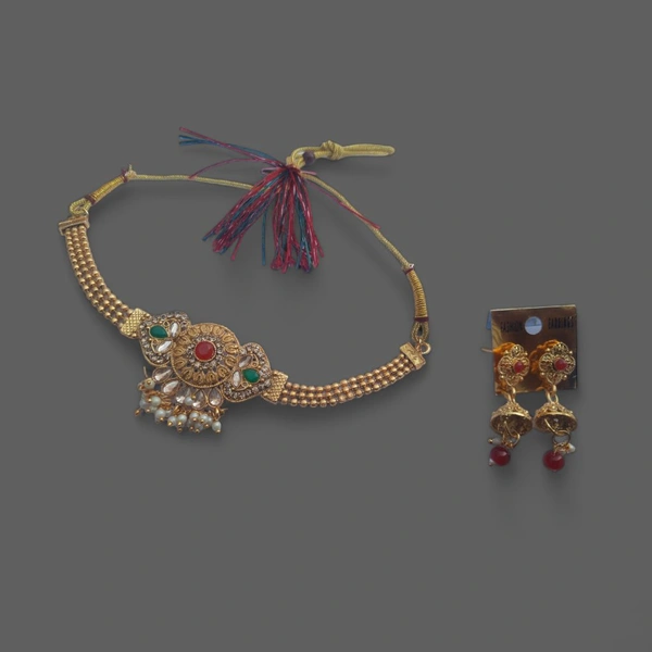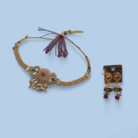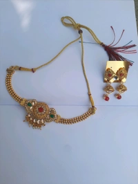Gold-plated red-coloured and green stone studded necklace